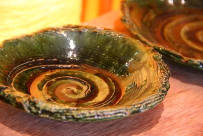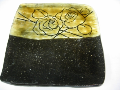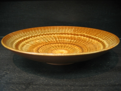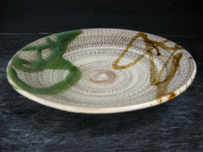 | 彩泥/スリップウエア(さいでい) 酸化金属を入れた泥を作り紋様を描いていく技法。 彩泥窯の主宰はこの技法に独自の手法を加えて創作している。 ![]() |
