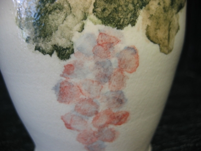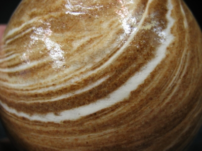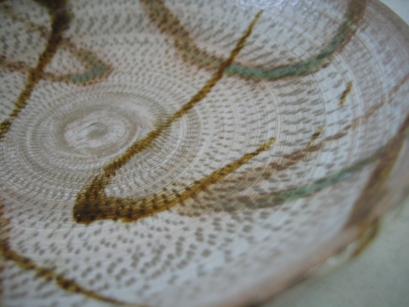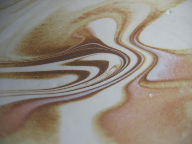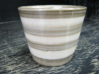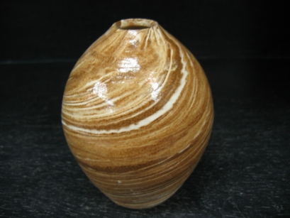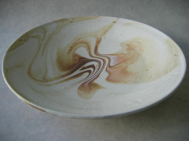練り込み(ねりこみ) 異なった色の粘土を菊練りで練り込み、成形することにより紋様を作り出す技法。 |