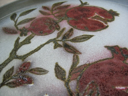 銀彩(ぎんさい) プラチナ液を使って低温焼成による上絵付けで銀色の発色を得る技法 |