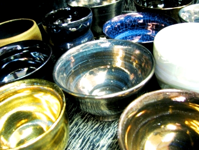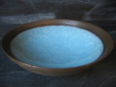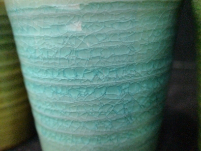 ガラス釉(がらす) ガラス質の多い釉薬を使って、生地土と釉薬の縮小係数の違いを利用して貫入を作る技法。夏向きの涼しい器が制作できる。 ![]() |