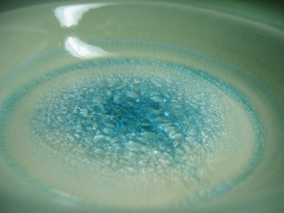 結晶釉(けっしょうゆう) 温度下降局面で、人為的に長時間化させる事により釉の結晶化を促進させる技法。 |