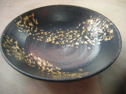 準備中 | 鉄ラメ紋様 釉薬に粒子の粗い鉄分を化合させることにより透明系釉の表面にラメのような斑点を作る技法。 彩泥窯オリジナル |