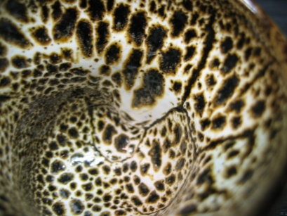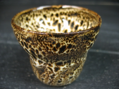 豹柄釉(ひょうがら) 釉薬の表面調合と焼成過程での発泡効果を利用することにより、本物のような豹柄の模様を焼き上げる技法 (彩泥窯オリジナル) |