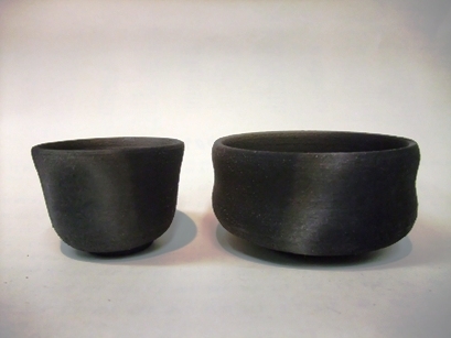 炭化焼成(たんかしょうせい) 炭化材に埋めて焼成し、強炭化と弱炭化との部位の違いを美しく表現する技法。 ![]() |