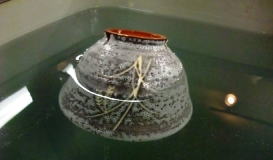 籾殻炭化(もみがらたんか) 籾殻に埋めて不完全燃焼の状態を進行させる方法。炭化と緋色のバランスが美しい技法。 ![]() |