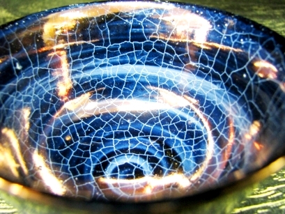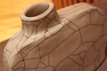氷裂貫入(ひょうれつかんにゅう) 生地土と釉薬の縮小係数の違いを利用して複雑に貫入をいれる技法。 |