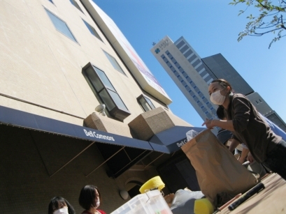 晴れの日は太陽の下で作陶できるのも、青山工房ならではの醍醐味。近くに六本木ヒルズが見えます。