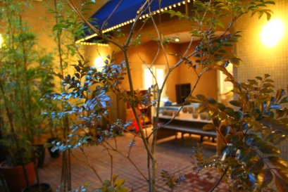 広いテラスはエアガンを使ったり、生地の研磨に最適。