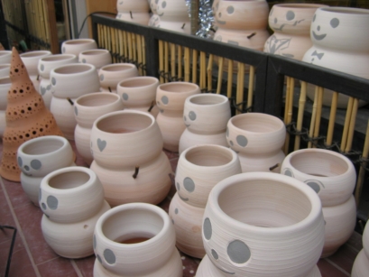 ズラリとならんだ雪だるま 植木鉢:500円~ |