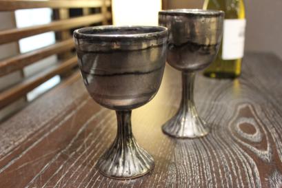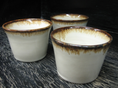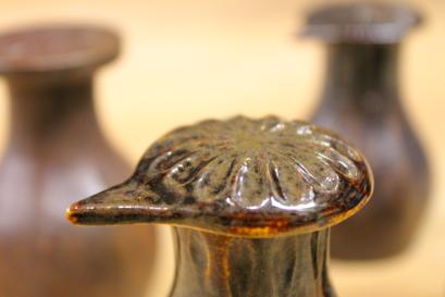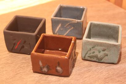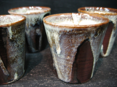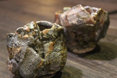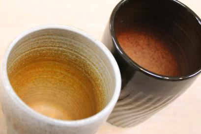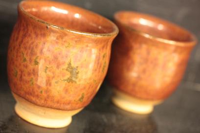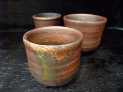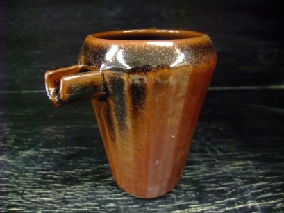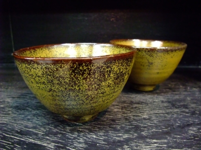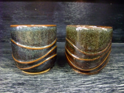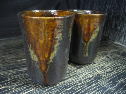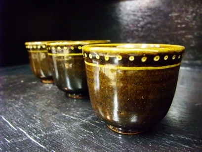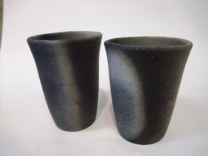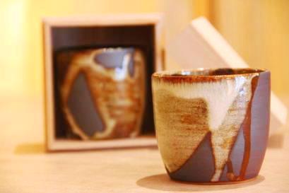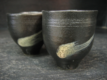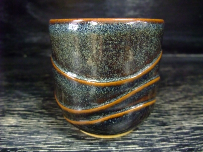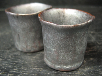 ![]() 鉄釉のぐいのみ 還元焼成で鉄釉だけを施釉し焼き締めた作品。磁石がくっつきそうなくらいの鉄感ですね。 |