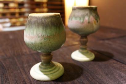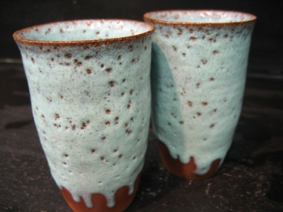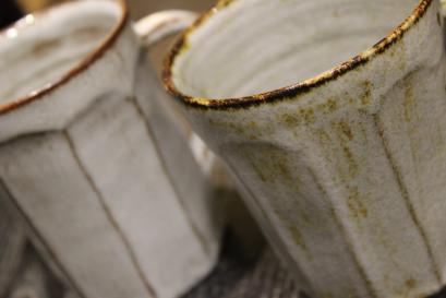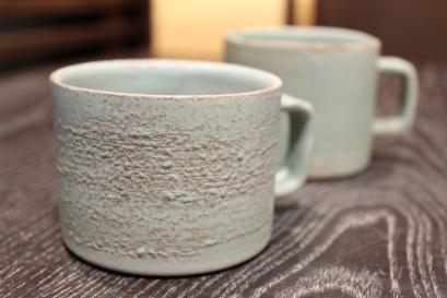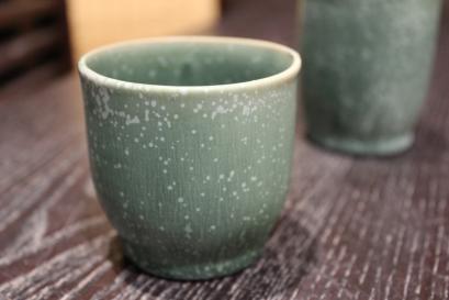 ![]() 青白釉のビールタンブラー 厚い釉薬掛けと表面に残したピンホールが美しいですね。 |