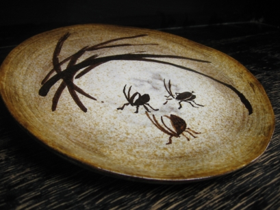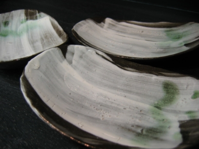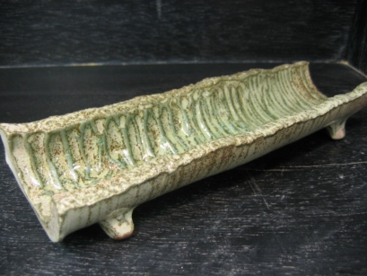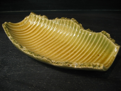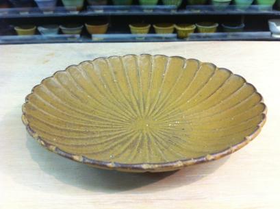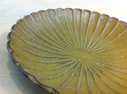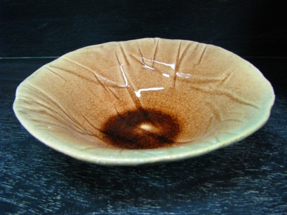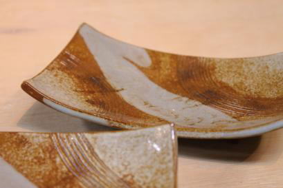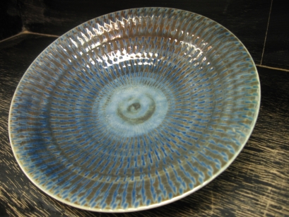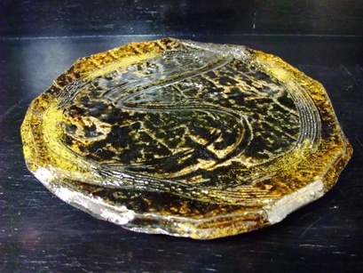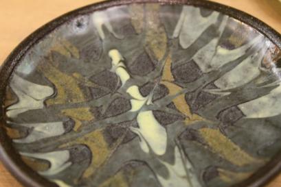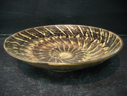 ![]() 切りバネを使った波紋皿 美しい稜線を描いた作品です。釉薬と生地が良く調和しています。 |