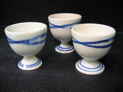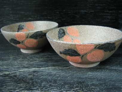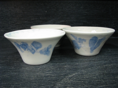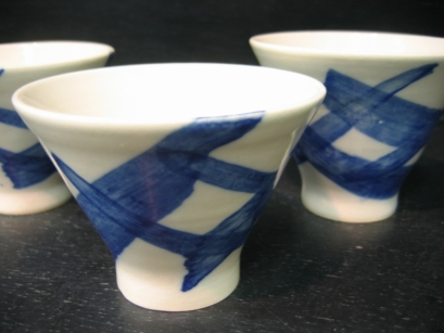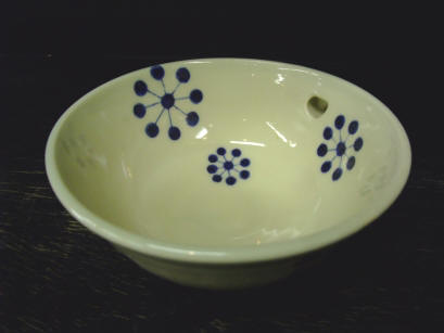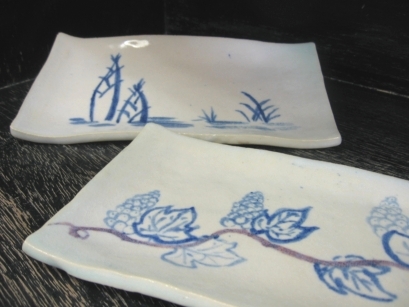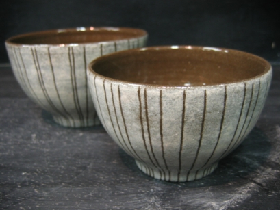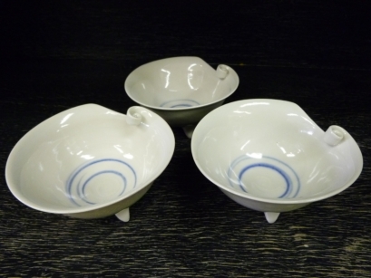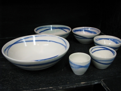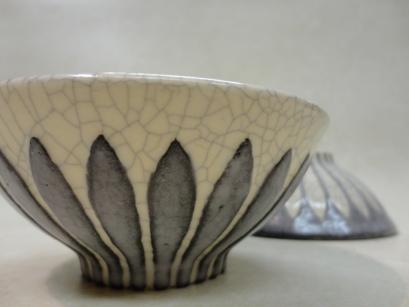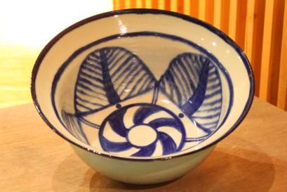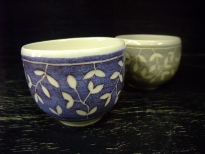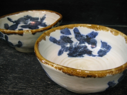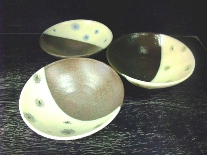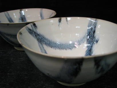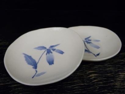 ![]() 半磁土で呉須を引いた作品。大小重なる素敵な器です。 |