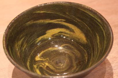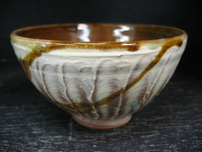 ![]() 複雑な釉調を目指した茶碗。3種の釉薬を技法を変えて施しています。(レシピはメンバーズサイトで 公開) |