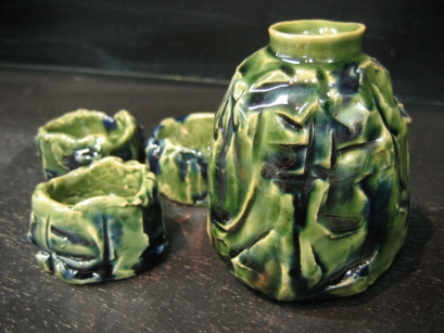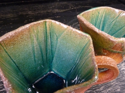 ![]() 青織部のとっくり 今回は二色掛けで選んでみました。緑釉の上に青釉を置いて青織部のような色彩を作った。緑が引き立つ斬新な作ですね。 (レシピはメンバーズサイトで公開) |
