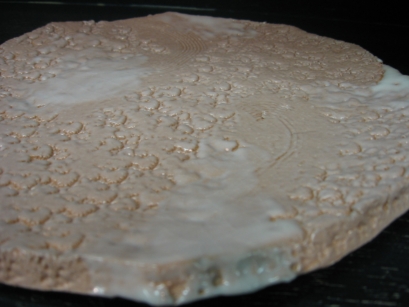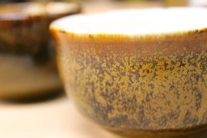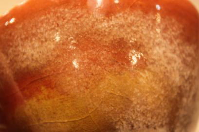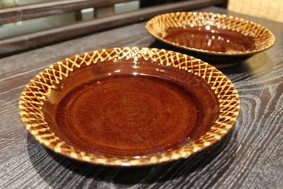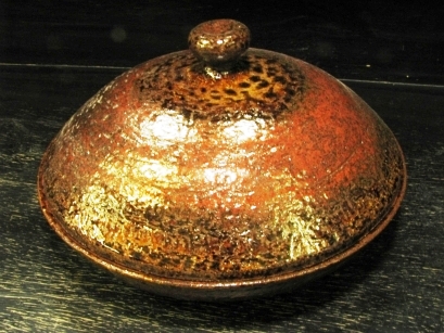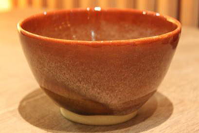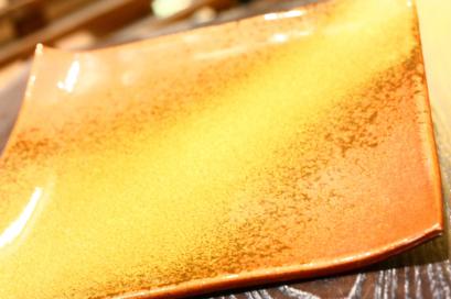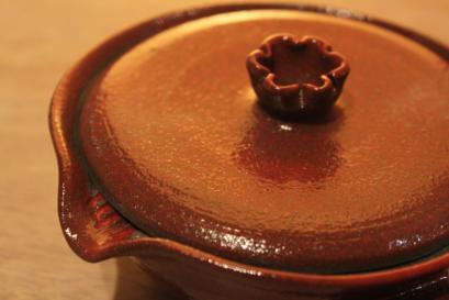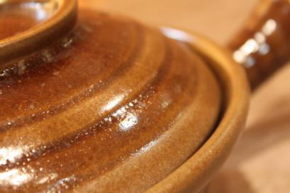 直火にかける器は焼成温度がやや低く、釉薬も専用のものでないといけない、というのが一般的ですが、彩泥窯の数ある釉薬の中にはそのまま使えるものも。これは飴釉です。(レシピはメンバーズサイトで 公開) |