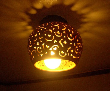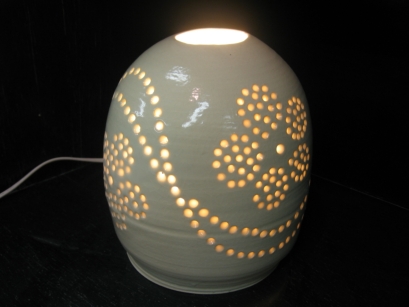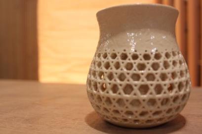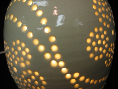 ![]() 蛍手の陶灯 たくさんの穴に釉薬を詰めて焼き上げた苦労の一品です。構図も可愛いく、光をいれてもきれいで、とっても家の中が明るくなりそうですね。 |