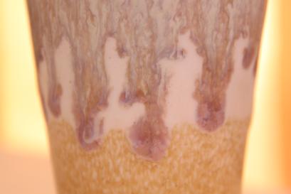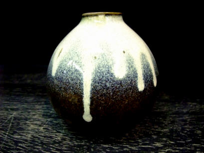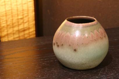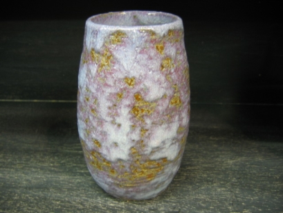 ![]() 還元焼成の花器 スポンジプリントで施釉した。濃淡の表情がバランスよくていいですね。窯変による薄紫と土肌との調和もグッド! |