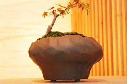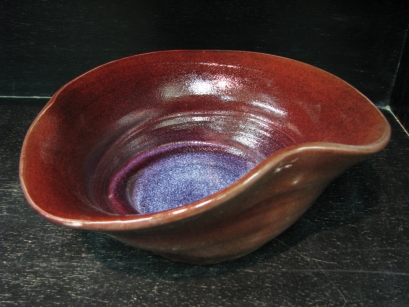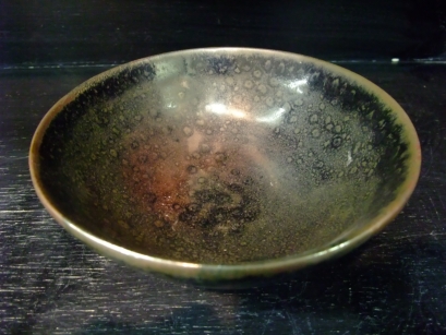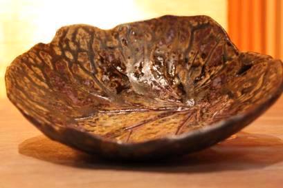 ![]() 鉄釉のみの深鉢 エアガンで鉄系の釉薬の実を噴霧している。端正でかっこいい器ですね。(レシピはメンバーズサイトで公開) |