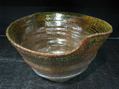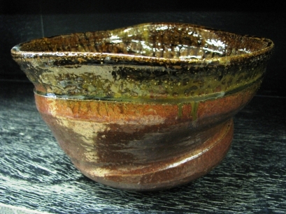 ![]() 鉄釉と灰釉を合わせて還元焼成している。撓めた口縁と釉調がマッチしていいですね。(レシピはメンバーズサイトで公開) |