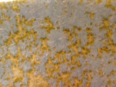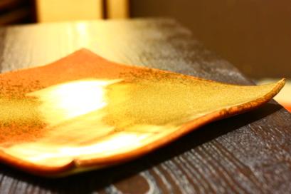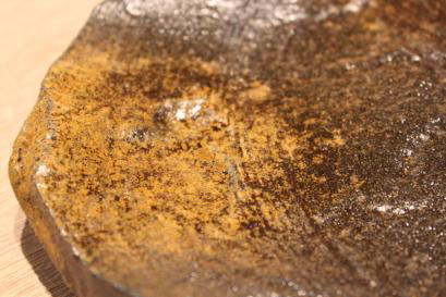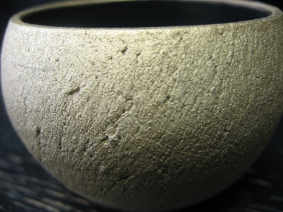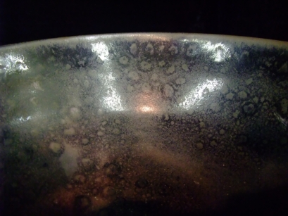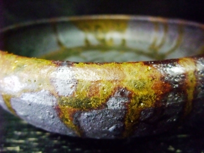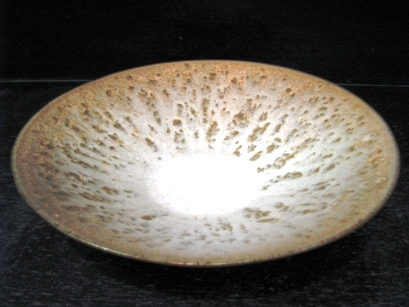 ![]() ゴールドラッシュ! 砂金の川のようですね。そば釉の美しい結晶が柄杓掛けによる健やかな流れとともに成長しました。 |
