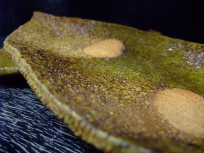 ![]() 流しかけの板皿。酸化焼成ですが還元で焼いたかのように仕上がりました。流しかけのバランスが上手く構成されており色の変化が美しいです。(レシピはメンバーズサイトで 公開) |