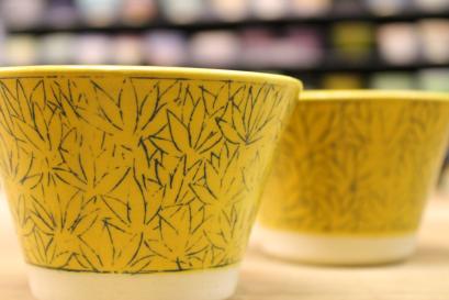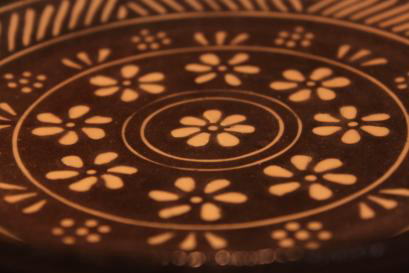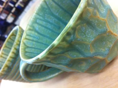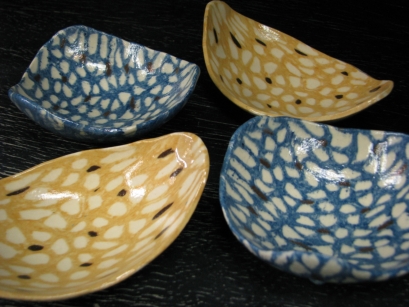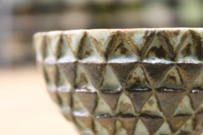![]() ぎやまん陶器シリーズ③ 溝を作ってガラス釉薬を溜めています。凹凸の表情が美しいですね。(レシピはメンバーズサイトで公開) |