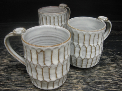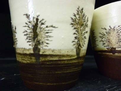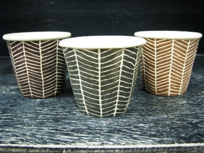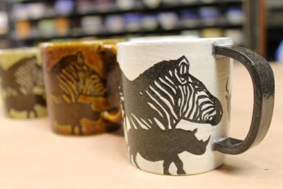 ![]() 虎模様のマグカップ 手捻りで成形して化粧土をスポンジプリントした。朝使うだけで目が覚めそうですね。 |