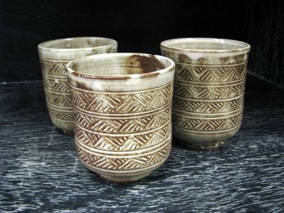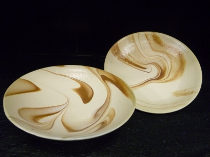 ![]() 今回は打ち刷毛目で選んでみました。 九州の小鹿田焼(おんたやき)に代表される装飾技法。比較的容易に美しい紋様ができる。。。。とは云え、この螺旋紋様は難易度が高いですね。 |