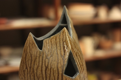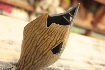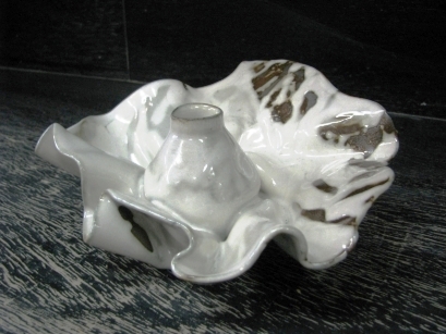 ![]() 蓮の香炉 半磁土でろくろ成形し口縁をカットして装飾。見事な造形ですね。 |