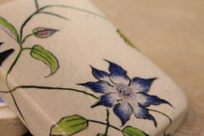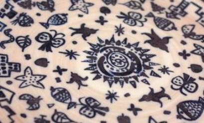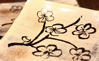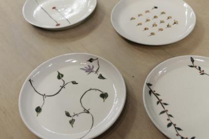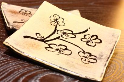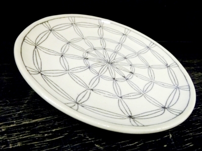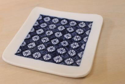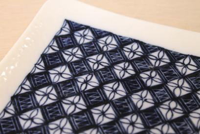 ![]() 印花による象嵌を施した皿。伝統的なモチーフでもモダンに仕上がっているのは、印花を自作しているからです。(レシピはメンバーズサイトで 公開) |