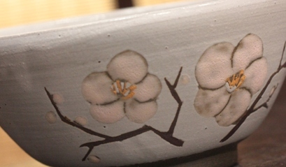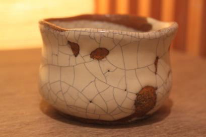 ![]() 志野茶碗 指跡と梅花皮(かいらぎ)が美しいですね。 |