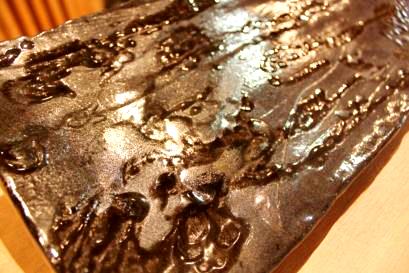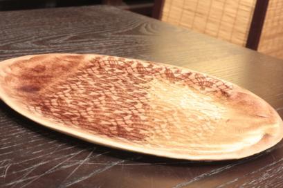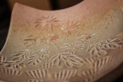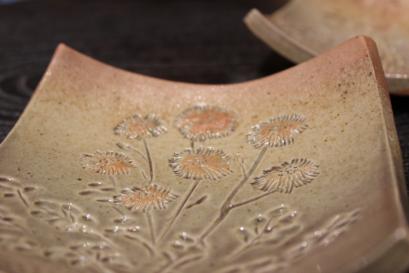 ![]() レリーフ状に彫り起こしたことによる起伏が、陰影が、立体感や高級感につながっています。泥と釉薬の相性も抜群。(レシピはメンバーズサイトで 公開) |