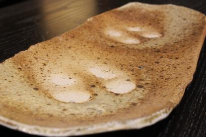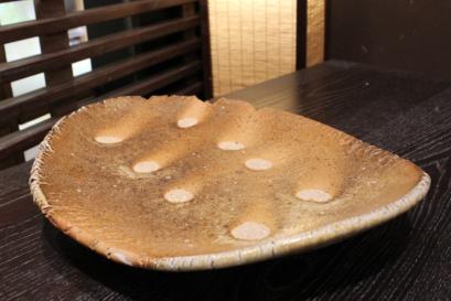 ![]() 備前風の大皿。土味を強調するように灰釉や鉄分で覆われています。 (レシピはメンバーズサイトで 公開) |