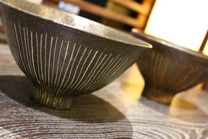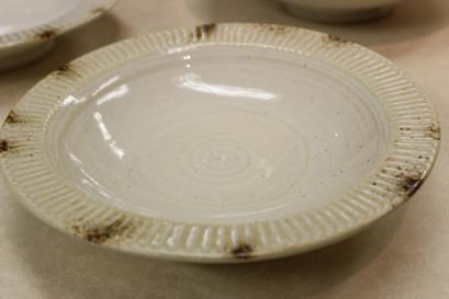 ![]() ロクロ目のうつわ 轆轤目(ろくろめ:電動ろくろで水挽き成形する際にできる指跡) 健康的で力強い伸びやかなロクロ目。こちらもうつわの表面の凹凸だけで美しく装飾されていますね。 |