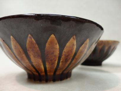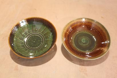 ![]() 9月開催の講習会で制作した唐津の向付。湿台を使った削り、鉄絵など伝統的な作り方を学びました。モチーフは松が一番人気。(レシピはメンバーズサイトで 公開) |