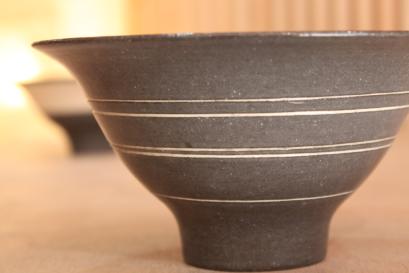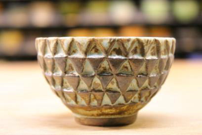 ![]() 鎬の抹茶茶碗。表面に凸凹をつけることでとても持ちやすい作品です。(レシピはメンバーズサイトで 公開) |