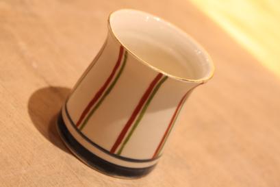 ![]() 以前(2/18)紹介したティーポット(右)にセットのティーカップです。3ヶ月後で完成。こうなったらソーサーもセットでほしいですね!作者「丈通」君、見てますか~? |