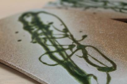 ![]() 新聞プリントの作品。土の違いを白薬が抑え込んで仕上がっています。少し釉の捲れが出ていますが、そこもいいですね。(レシピはメンバーズサイトで公開) |