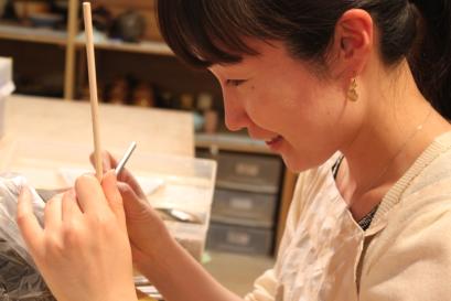 ![]() 練り上げ研究中の会員さん。同じ手順でもちょっとの違いで結果が大きく変わる技法を難しく思いつつも、それが面白くもあります。(レシピはメンバーズサイトで 公開) |