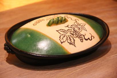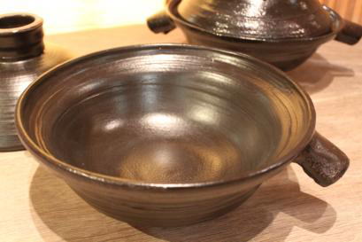 ![]() 耐火耐熱の土を使った作品といえばやはり「土鍋」ではないでしょうか。重厚感のある鍋黒釉がお勧めです。(レシピはメンバーズサイトで 公開) |