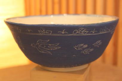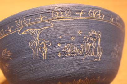 ![]() 掻き落としを施した丼。およそ25Φ、手びねりでの大作です。(レシピはメンバーズサイトで 公開) |