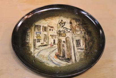 ![]() 度の風景を描いた大皿。縁の黒めのグラデーションにより街に吸い込まれるような感覚になります。 (レシピはメンバーズサイトで 公開) |
