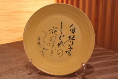 ![]() 芭蕉の句が書き入れられた皿。皿単体でも高い品質ですが、書体表現がまた見どころですね。(レシピはメンバーズサイトで 公開) |
