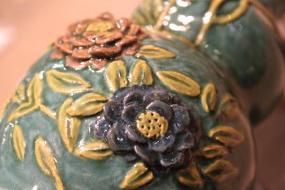 ![]() レリーフ状に掻き落とした花器。彫りもさることながら、姿かたちにも拘りつくりました。(レシピはメンバーズサイトで 公開) |