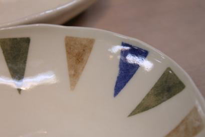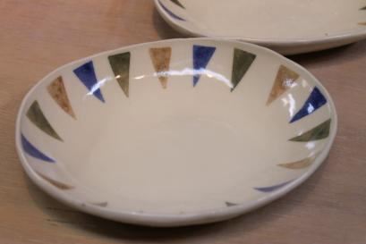![]() 手びねりの楕円鉢。スタンプで押したように同じ模様が描ける和紙染め技法。水彩絵の具で描いたかのような淡くやわらかい印象に仕上がりました。(レシピはメンバーズサイトで 公開) |