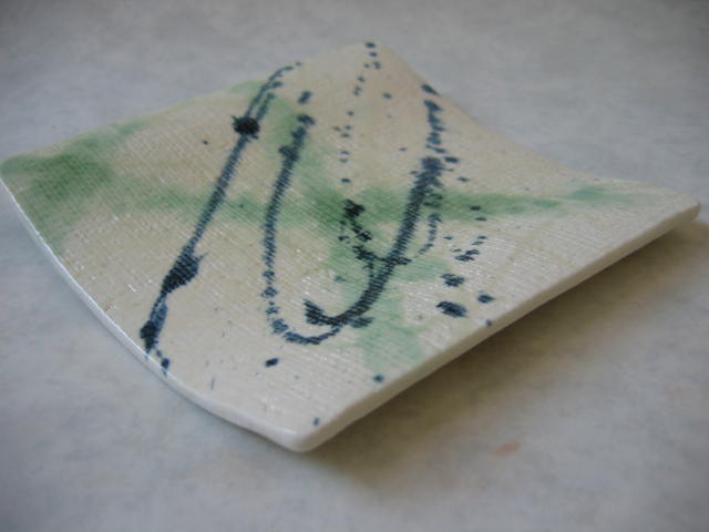 複数の釉薬で水彩のように絵を描いた作品。