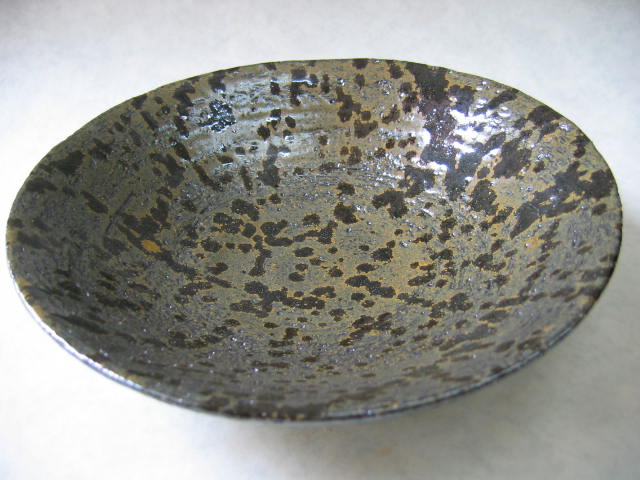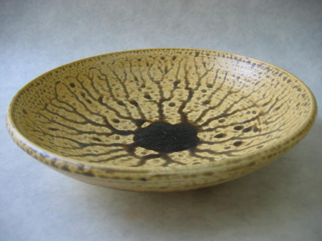 鉄系釉の表面に意図的な結晶模様を作った作品。