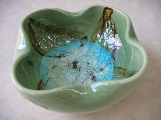 緑釉とガラスを上手く組み合わせた作品
