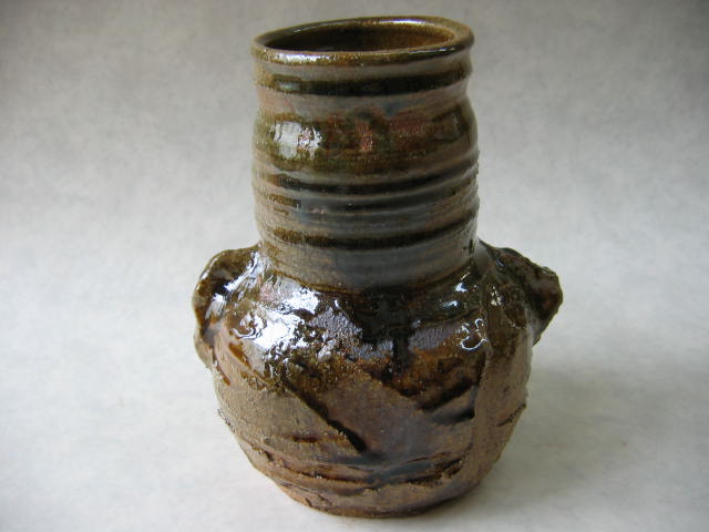 鉄と銅、天然灰(自作)を組み合わせて施釉した花生け。